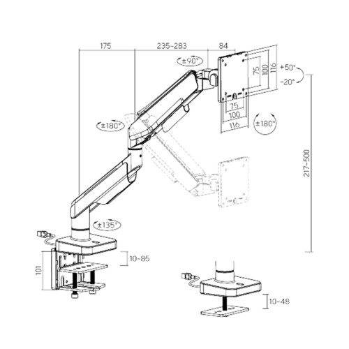 Настольный кронштейн с газлифтом XG MGG-1749 white для 1 монитора (17"-49") Белый